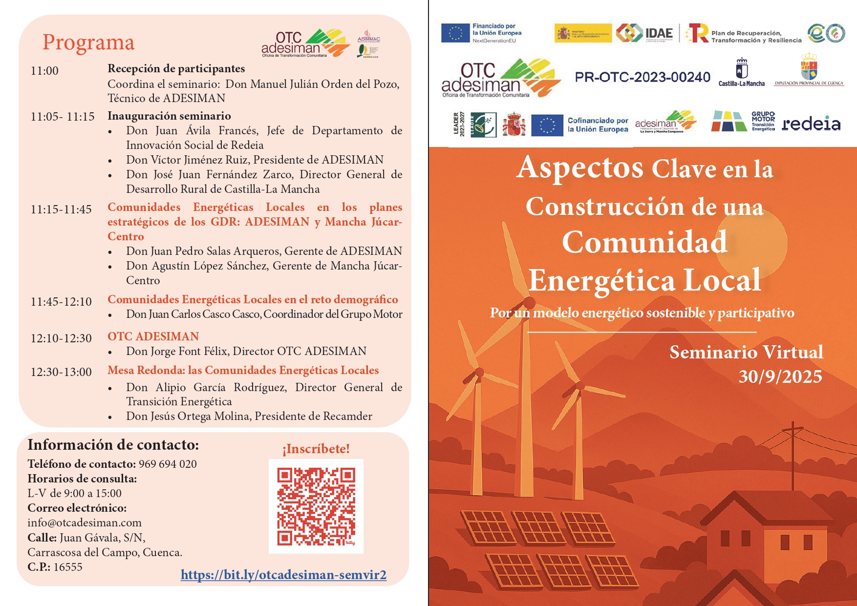Noticias Seminario Virtual: Aspectos Clave en la Construcción de una Comunidad Energética Local | 30 de septiembre de 2025 | 🕚 11:00 h Leer más Webinar de Presentación de Herramientas para el Apoyo al Desarrollo de Proyectos de Transición Energética y Creación de Comunidades Energéticas por los Grupos de Acción Local Leer más Jornadas clave para impulsar la transición energética y las comunidades energéticas rurales - 14 de Julio de 2025 de 9.30 a 14.30 Leer más Jornadas sobre Comunidades Energéticas Locales en Tarancón - 02 de Julio de 2025 de 10 a 14 Leer más Jornada “Transición Energética, Innovación Social y Tecnología en el Medio Rural” – Molina de Aragón, 21 de mayo de 2025 Leer más WEBINAR: UN MODELO DE DESARROLLO TERRITORIAL PARA LOS GRUPOS DE ACCIÓN LOCAL BASADO EN LA CREACIÓN DE COMUNIDADES ENERGÉTICAS Leer más GRAN ÉXITO DE LAS JORNADAS DEL 19 DE DICIEMBRE PROMOVIDAS POR EL GRUPO DE DESARROLLO RURAL MANCHA JÚCAR CENTRO CON LA COLABORACIÓN DEL GRUPO MOTOR Leer más Jornada sobre «Nuevos modelos de Desarrollo Territorial» el día 19 de Diciembre en La Roda (Albacete) Leer más Sigue aquí el evento sobre las Oportunidades de la Transición Ecológica para el desarrollo de una Nueva Economía en el Medio Rural. Leer más Las Oportunidades de la Transición Ecológica para el desarrollo de una Nueva Economía en el Medio Rural. Leer más El Grupo Motor para la Transición Energética, mención especial en los Good Practice of the Year de RGI Leer más Reunión de trabajo del Grupo Motor para avanzar y transferir un nuevo modelo de desarrollo rural basado en la transición energética. Leer más Invitación de ENERAGEN, como miembro del Grupo Motor para asistir al webinar: ¡ÚLTIMA CONVOCATORIA DE LA EU CITYFACILITY! Leer más FEUP se une al Grupo Motor para la Transición Energética con el fin de contribuir aportando su experiencia y conocimiento así como su red de universidades populares diseminada por todo el país. Leer más ECODES se une al Grupo Motor para la Transición Energética con el fin de contribuir aportando su experiencia y conocimiento sobre sostenibilidad y transición energética. Leer más PRÓXIMO WEBINAR SOBRE SUBVENCIÓN DE PROYECTOS PILOTO DE COMUNIDADES ENERGÉTICAS 5ª Y 6ª CONVOCATORIA DEL CE IMPLEMENTA EL DÍA 9 DE SEPTIEMBRE DE 10.00 A 11.00 Leer más PRÓXIMO WEBINAR LAS COMUNIDADES ENERGÉTICAS: UNA HERRAMIENTA PARA LA TRANSFORMACIÓN SOCIAL EN EL ÁMBITO RURAL EL DÍA 21 DE JUNIO DE 10.30 A 12.30 Leer más Redeia impulsa la creación del Grupo Motor para el Desarrollo Territorial de la Transición Energética Leer más El Ceder La Serena informa de la presentación del Grupo Motor y la Guía para la Transición Energética en España Leer más Desarrollo rural sostenible. Redeia impulsa la creación del Grupo Motor para el Desarrollo Territorial de la Transición Energética Leer más Esta es la hoja de ruta para el autoconsumo... en clave rural Leer más El Grupo Motor para el Desarrollo Territorial de la Transición Energética ayudará al medio rural Leer más Javier Vidal representa a Eneragen en la presentación de la Guía para la elaboración de Planes de Transición Energética en España Leer más Impulsado por Asistencia técnica